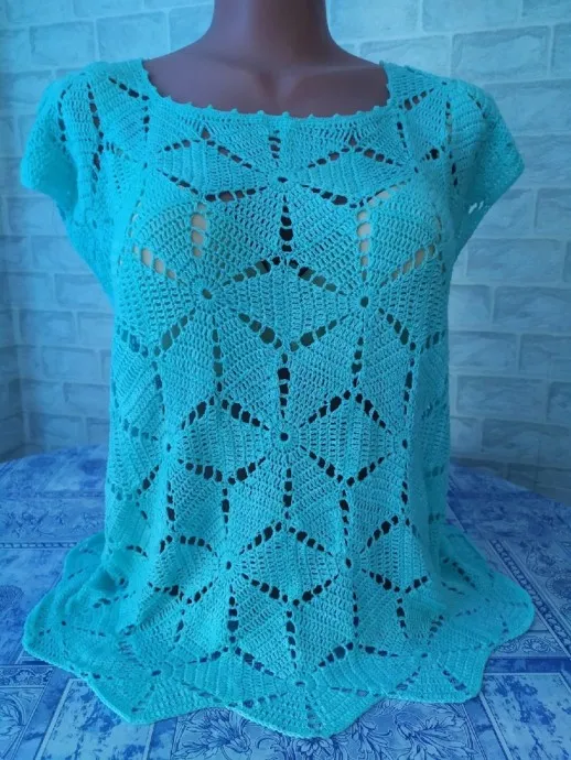 Синий топ из мотивов крючком