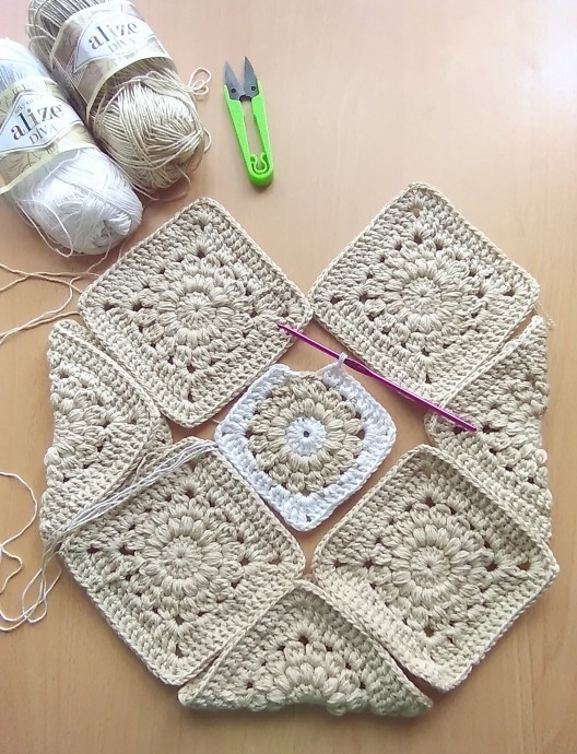 Доброго всем дня!! Сумочку вязала на подарок ко дню рождения. Посылка с пряжей задерживалась, оч.переживала, что не успею. Вязала из Alize DIVA в три нити, крючком N4. Сумка-377гр. Заказала 3 моточка, планировала в 2нити вязать, но квадратики получались маленькие и полотно хотелось чтобы было поплотнее. Решила вязать в 3 сложения...понимаю, что пряжи нехватит, а до д.р. осталось 3дня