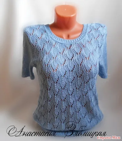 Кофточка "Небесная даль", рр 44-46, горловина -кетлевка, рукава ввязаны (сверху вниз), ниточки дива (ушло 2+ моточка), спицы 3.