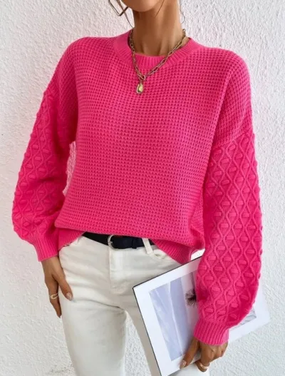 Джемпер спицами с узорчатыми рукавами