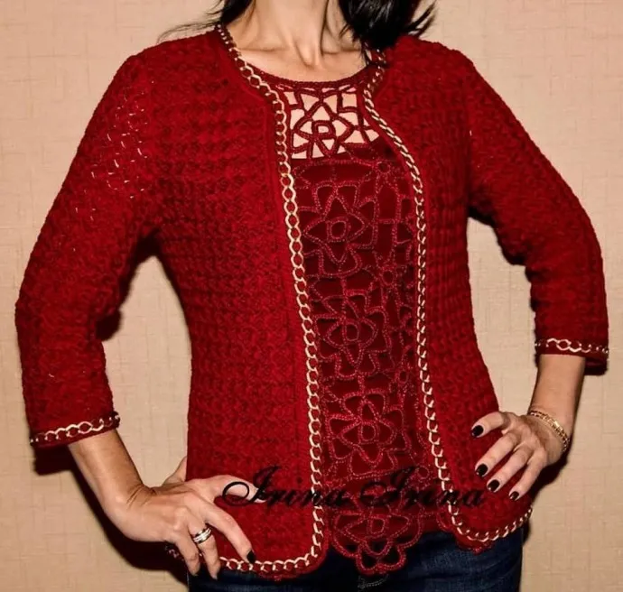 Комплект из топа и жакета, вяжем крючком