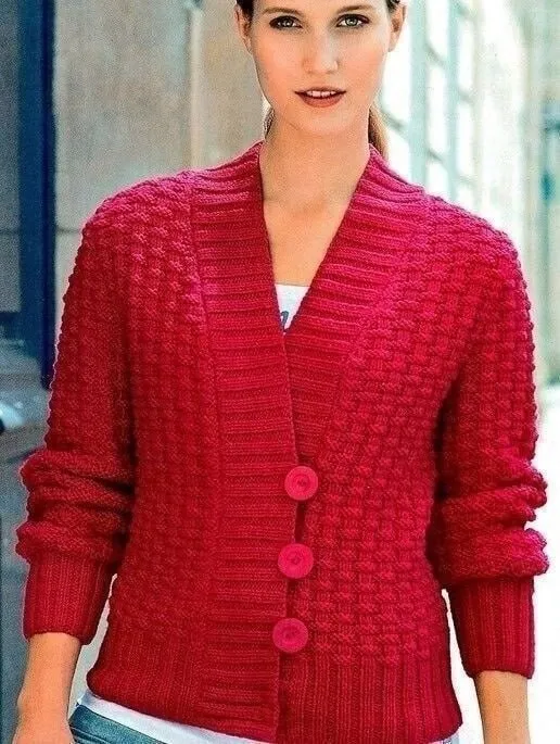 Красный кардиган спицами