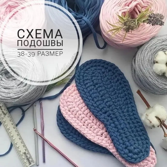 Схема подошвы 38-39 размер для тапочек из трикотажной пряжи