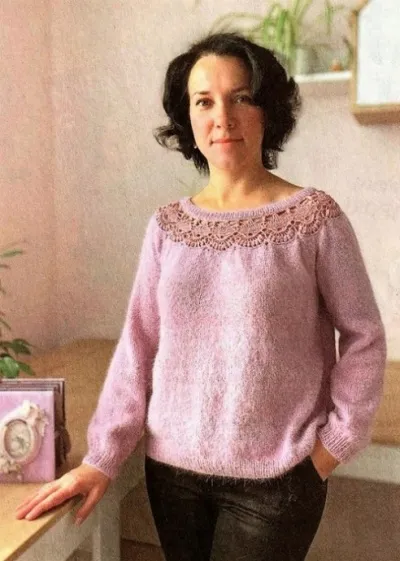 для розового джемпера – пряжа из пуха норки (350 м/50 г) – 4 мотка, мерсеризованный хлопок Filo Di Scozia №5 (226 м/50 г) – 1 моток;