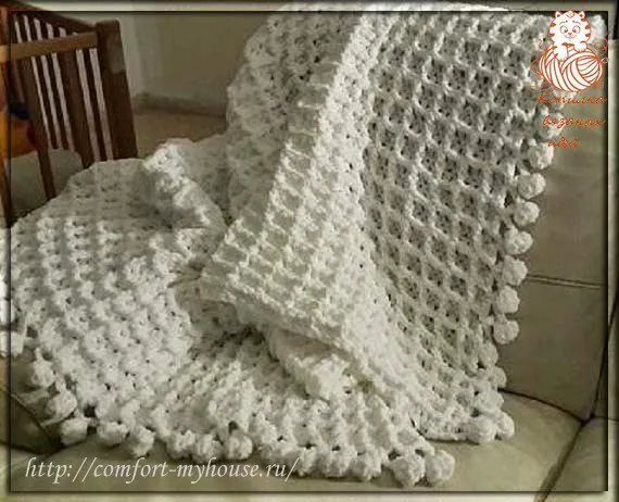Плед связан из очень мягкой и пушистой пряжи dolphin.