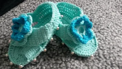 Попробовала связать внучке обувку