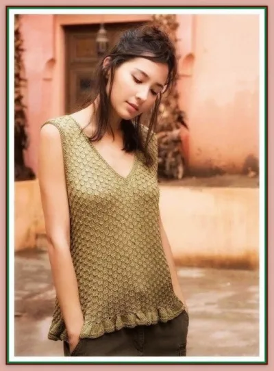 Топ с рюшами по низу, вяжем спицами