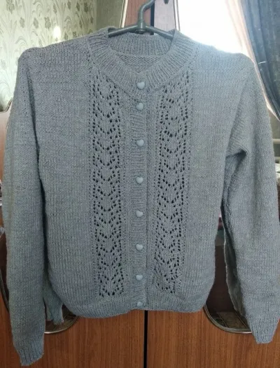 Красивая работа! Связано аккуратно. Буговки и ажурная вставка очень красиво смотрятся на Вашем изделии.
