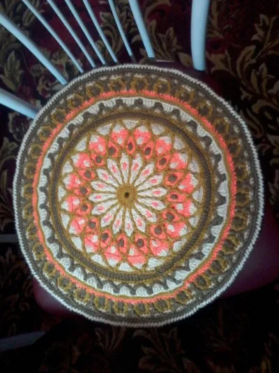 и все же я его связала! я уже показывала раньше вязание таких ковриков по месяцам и решила опробовать эту технику - связала пробный маленький - сидушечку на стул