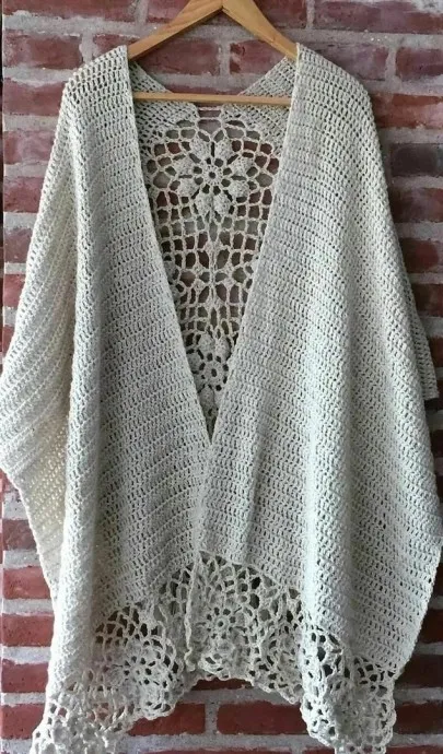 Я бы ажур сделала не в центре, а по краям. Так спине было бы теплее, к лицу — нежность.
