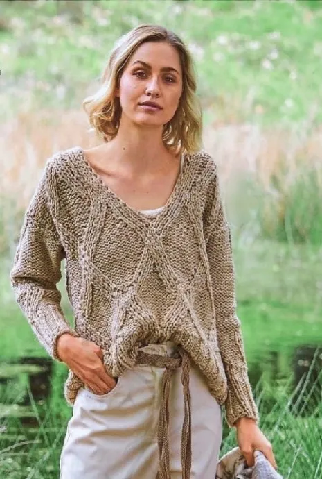 Пуловер с V-образной горловиной спицами