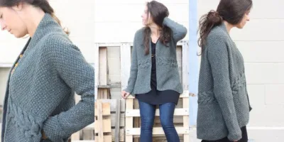 Нижняя часть поднимается по длине кромки косы и вяжется вниз на нужную вам длину, то есть вы можете изменить длину кардигана, сделав его полноценным пальто.