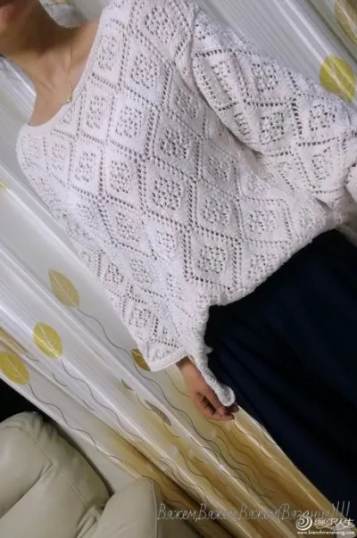Красивый ажурный узор "Ромбы" для белого джемпера