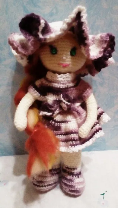 Куколка Барышня.Рост 24см,связана из остатков пряжи,волосы из шерсти для валяния.