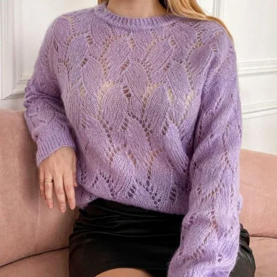 Нежный сиреневый джемпер с красивым узором, напоминающим цветки сирени.
