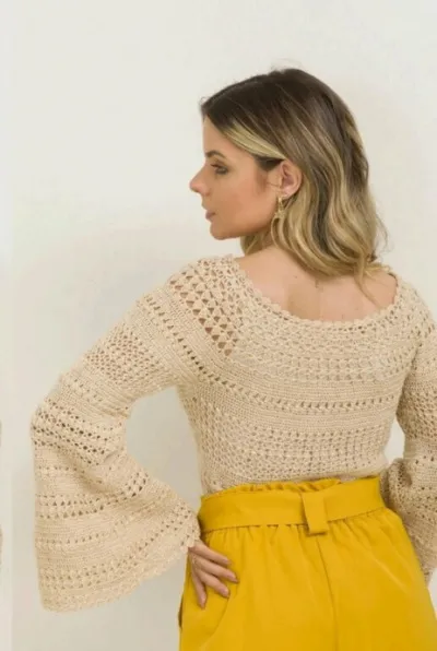 Джемпер с расклешенными рукавами крючком