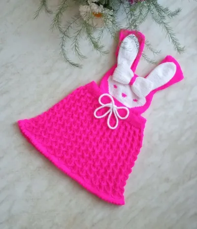 Выполнила заказ внучки - сарафанчик Зая, дочку вдохновил сарафан, найденный на просторах интернета от Марины Кузнецовой. Сарафанчик связан из пряжи Детская новинка от пехорки на рост 82 - 86, как раз на первый день рождения. Но фото на внучке не получились - ещё та егоза! Вместе с ушками сарафанчик весит 110г. Ушки двойные.