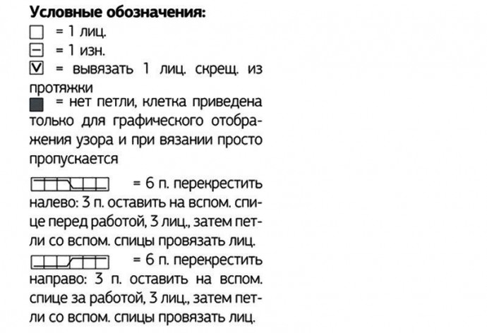 Для скосов прибавить с обеих сторон в 11-м р. от планки 1 п., затем в каждом 10-м (8-м) р. еще 9 (12)×1 п. = 83 (89) п. Прибавленные с обеих сторон петли включать по рисунку в резинку с косами.
