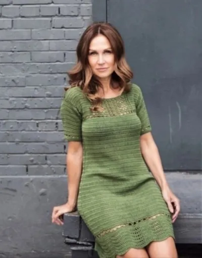 Платье с ажурной вставкой, вяжем спицами