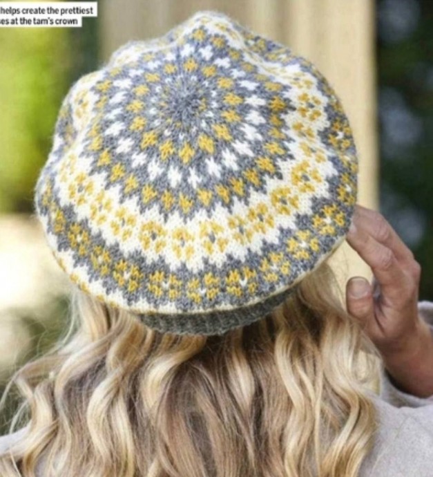 Берет жаккардовым узором спицами