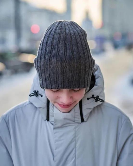 У нас новая двойная шапочка, можно носить с напуском, можно с отворотом, а можно вывернуть на изнанку, и получится шапка резинкой 2х2
