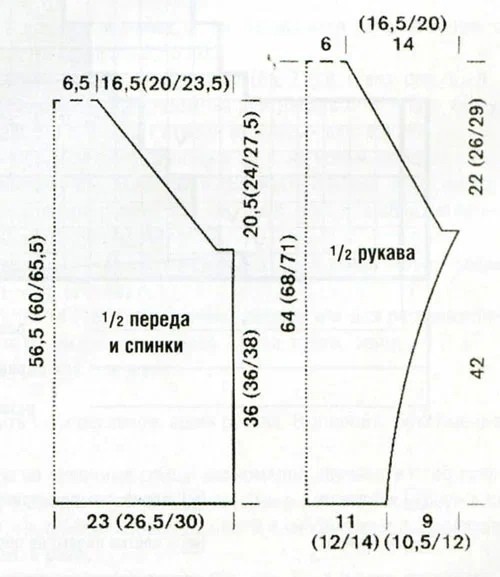 Можно увеличить количество изнаночных петель между ажурными дорожками исходя из ваших расчетов, для того, чтобы гармонично разместить узор на выкройке.