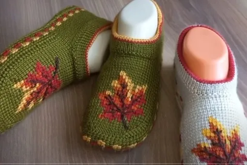 Вязаные тапочки "Листопад "