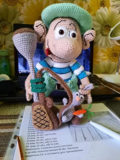 Охотник с собакой и уткой в руке.Вот такой охотник у меня получился, связан на заказ к юбилею охотника. Надеюсь работа понравится. Высота охотника 50 см