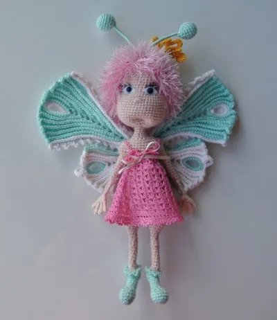 Пару лет назад дочь подарила мне на мой день рождения мастер-класс Бабочки - Капустницы от Елены Макеенковой (ЯМИ). Руки долго не доходили до этой работы, но все же я ее закончила. Я получила огромное удовольствие от процесса вязания ( за что огромное спасибо создателю мастер-класса ) , а дочь интерьерную игрушку, которая сейчас украшает ее комнату.