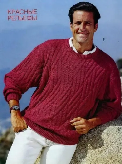 Вяжем мужчинам: джемпер спицами теневым узором