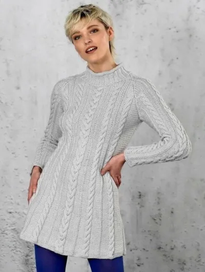 Вертикальный узор из кос в этом коротком платье визуально вытягивает фигуру.