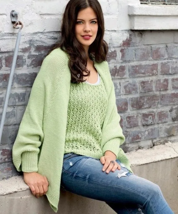 Накидка свободного кроя, связанная гладью, идеально подходят для демисезонного периода. Носить ее можно как с футболками и водолазками, так и с вязаными вещами.