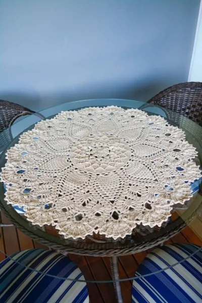 Вам потребуется: 5 мотков пряжи (100% мерсеризованный хлопок; 170 м/100 гр.); крючок № 3.