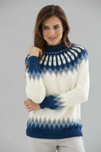 Красивый вязаный свитер со скандинавскими узорами