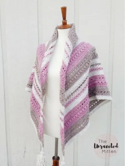 Очень нежное приятное сочетание цветов, удачно подобранная схема создают эффект нарядного дополнения к вещи, подчеркивающего индивидуальность владельца шали. Спасибо