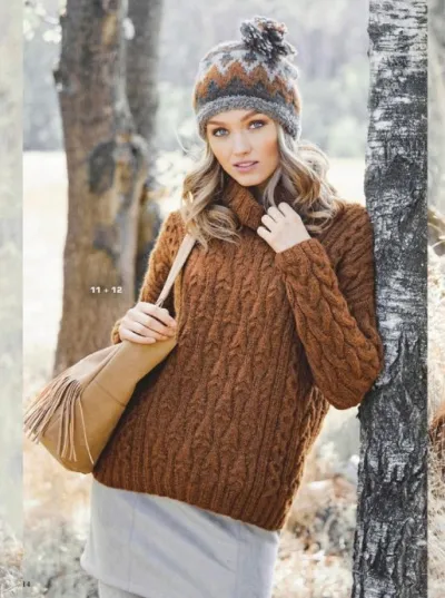 Джемпер с косами и шапочка с жаккардовым узором спицами