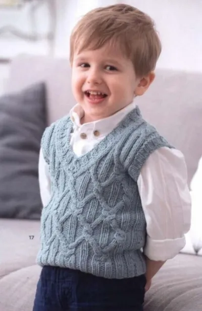 Описание вязания жилета спицами для мальчика 1-5 лет.