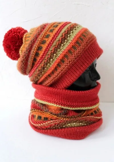 Шапка-бини и снуд спицами