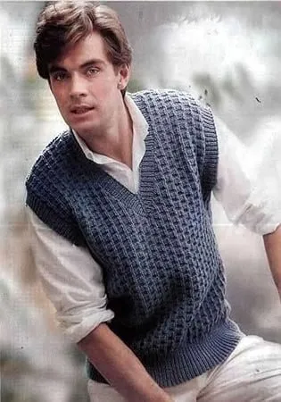 Вяжем мужчинам: Жилет шахматным узором спицами
