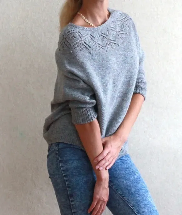 Джемпер с круглой кокеткой спицами