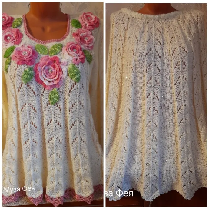 Костюм "Зимние розы" спицы+крючок