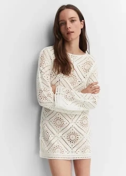 Для вязания такого платья можно использовать любые мотивы. Но... Основной принцип, который заложен дизайнером в платье и который придаёт ему элегантности, видимо, заключается в том, что мотив не должен быть сложным (навороченным), то есть, не отягощён сложными элементами.