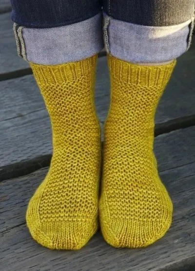 Пятка: провязать 14 (16, 18, 20, 22, 24) лиц.п. и отложить эти петли на дополнительную спицу, а пятку вязать над последними 14 (16, 18, 20, 22, 24) петлями.1-й ряд (лиц. сторона): снять петлю, вязать лицевыми, повернуть работу.2-й ряд (изн. сторона): снять петлю, вязать изнаночными, повернуть работу.Повторять 1-2 ряды всего 6 (7, 8, 9, 10, 11) раз – провязано 12 (14, 16, 18, 20, 22) ряда пятки.Далее начать выполнять короткие ряды:1-й ряд (лиц. сторона: снять петлю, 6 (8, 10, 12, 12, 14) лиц., 2 вместе лиц. влево, 1 лиц., повернуть работу.2-й ряд (изн. сторона): снять петлю, 1 (3, 5, 7, 5, 7) изн., 2 вместе изн., 1 изн., повернуть работу.3-й ряд: снять петлю, вязать лицевыми до 1 петлю перед предыдущем поворотом, 2 вместе лиц. влево, 1 лиц., повернуть работу.4-й ряд: снять петлю, вязать изнаночными до 1 петлю перед предыдущем поворотом, 2 вместе изн., 1 изн., повернуть работу.Повторять 3-4 ряды, пока для петель пятки не останется всего 8 (10, 12, 14, 14, 16) петель.