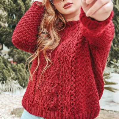 Джемпер спицами узором с листьями