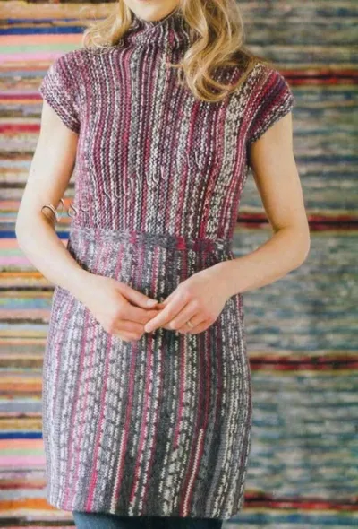 Меланжевое платье/туника спицами, связанное поперёк