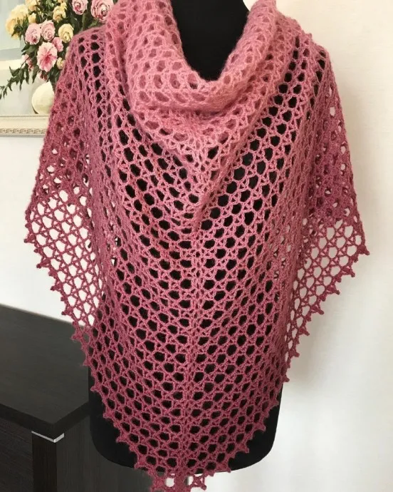 из пряжи alizeangoragoldombrebatik крючком номер 3, ушёл ровно один моток, размер шали после вто 192х96 см