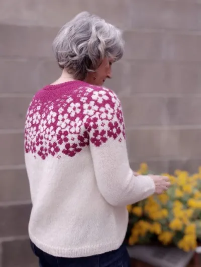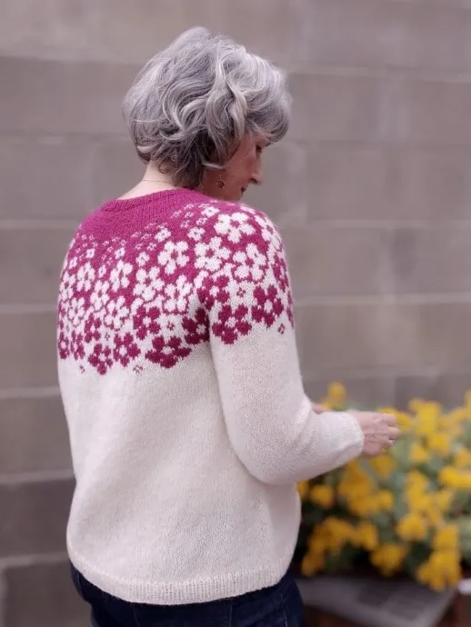 Джемпер с круглой жаккардовой кокеткой с цветами