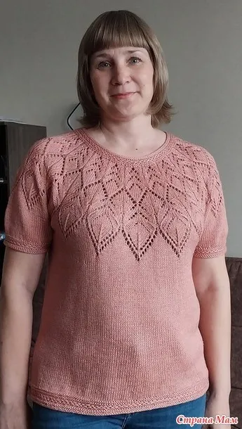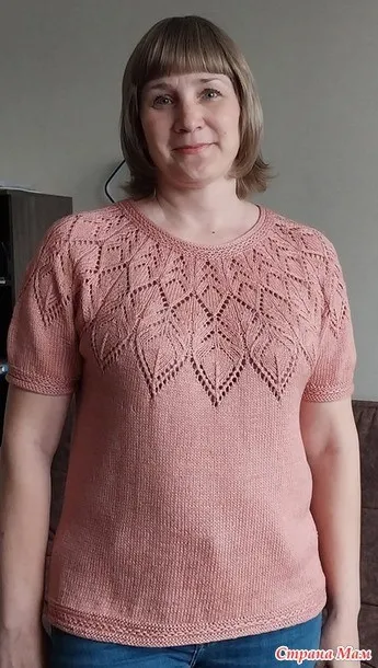 Футболочка из бобинного хлопка с вискозой. Пряжа примерно 240м./100гр. Спицы 3, и 4. Расход 400грамм.