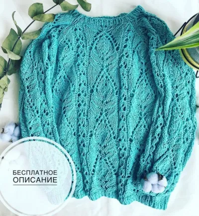 Далее соединяем рукава и тело ( на подрезы по 6 петель оставляла ) и вяжем по узору с убавками через ряд на нужную вам высоту, вывязываем горловину резинкой 1*1, сшиваем подрезы!