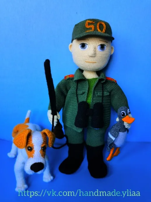 Вот такой охотник у меня получился, связан на заказ к юбилею охотника. Надеюсь работа понравится.